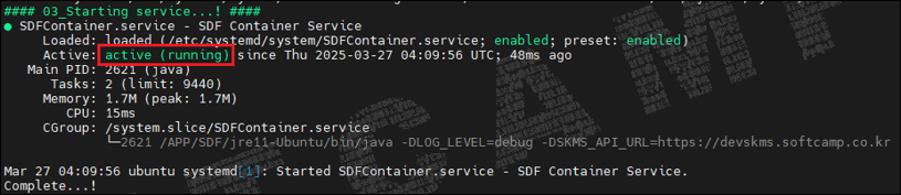◈ 시작 스크립트 실행: ./SDFContainer_start.sh (최초 설치 시 서비스 자동 시작 됨)